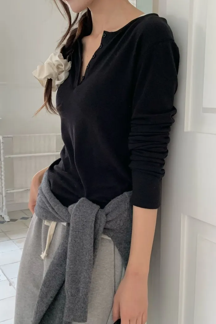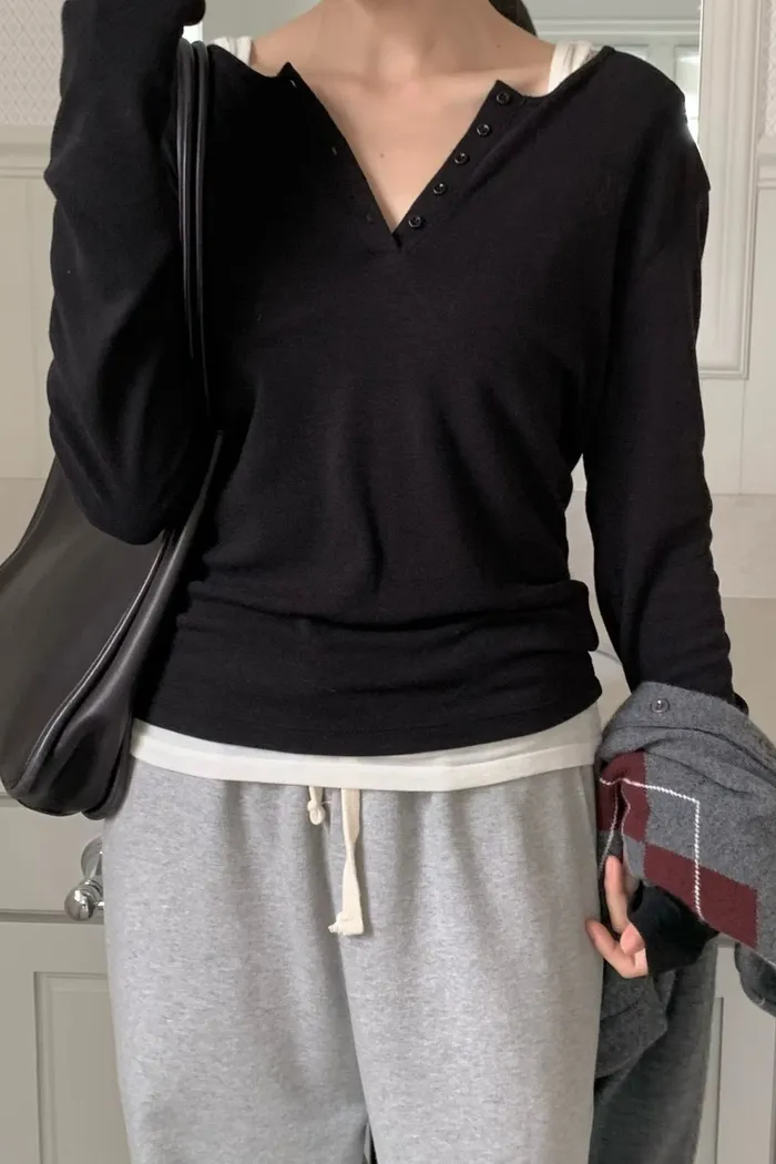 半開領排釦上衣