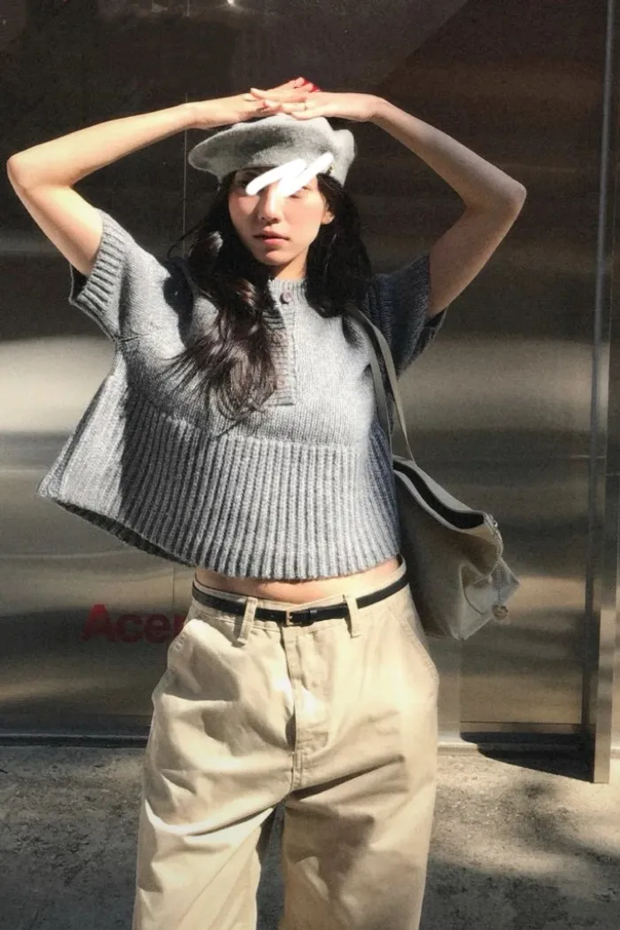 【model身高/體重】【商品材質說明】 材質:棉+聚酯纖維【商品說明】S-小L都可以穿 【商品洗滌建議】 1.建議手洗,若機洗請使用洗衣網袋並以弱速清洗脫水 2.請使用中性洗劑,勿使用漂白劑,禁止浸泡 3.針織毛線、毛呢類商品建議乾洗 4.商品不可烘乾以避免造成商品縮水