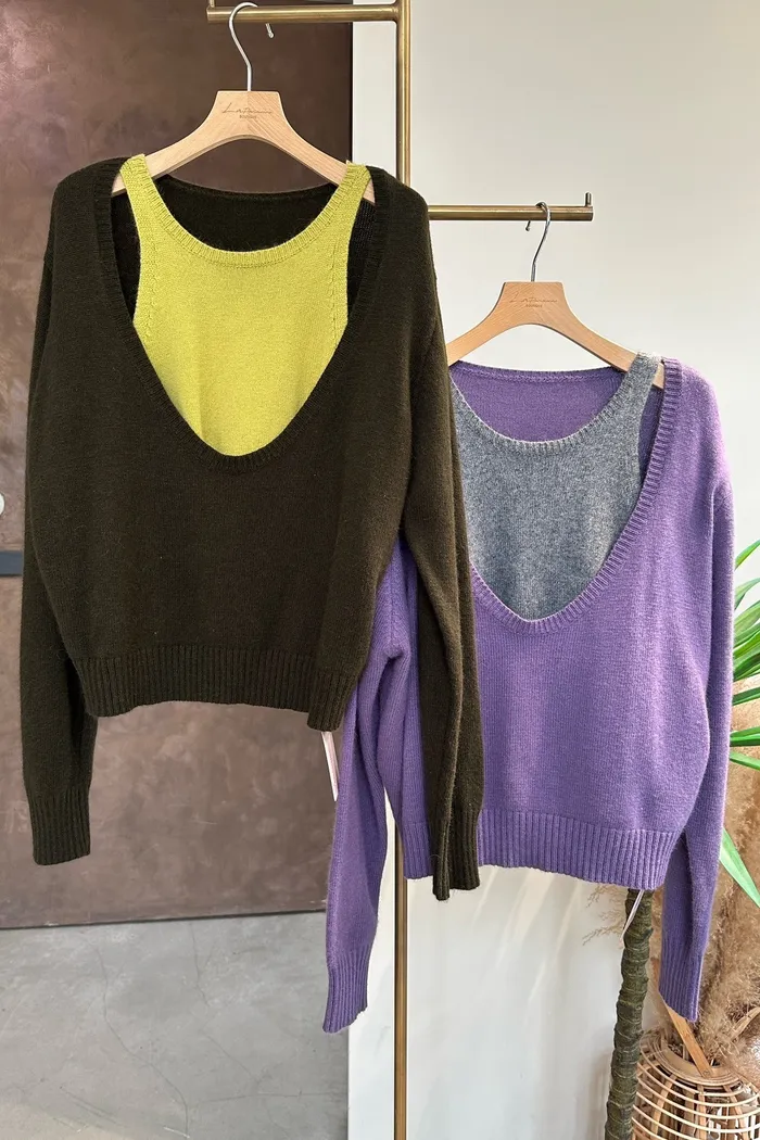 胸前大V領假兩件