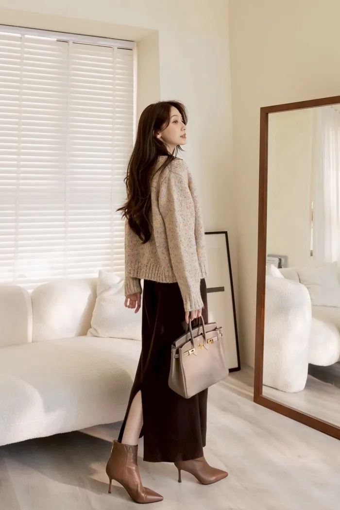 這款開衫主打別緻的慵懶風格,適合冬季穿搭