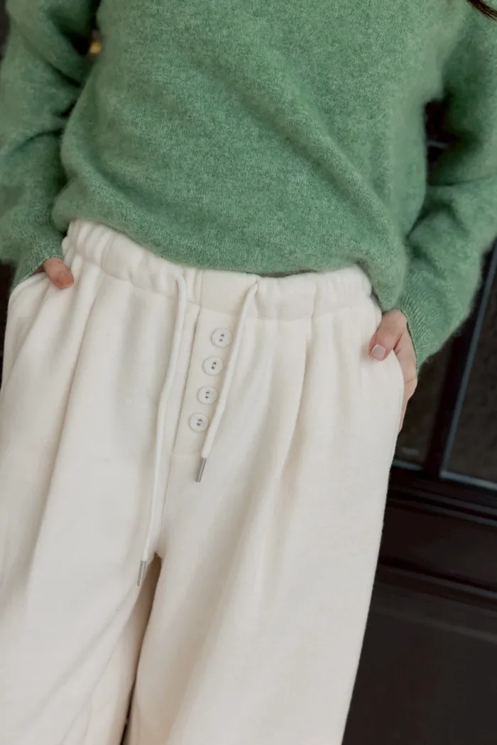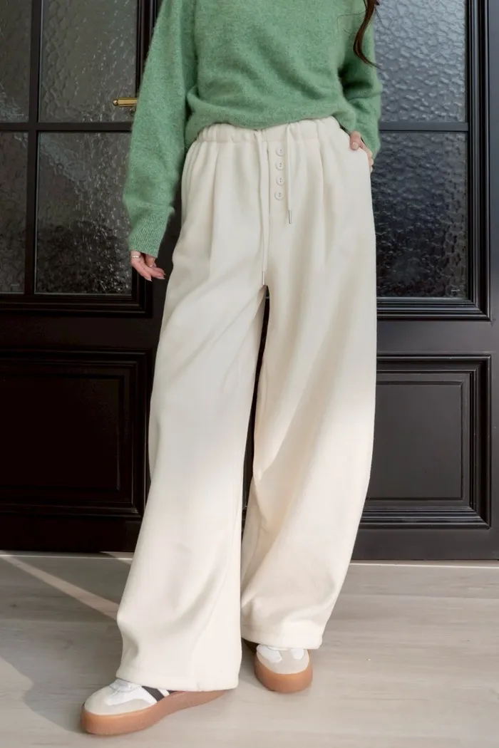 褲腳有伸縮抽繩可拉成縮口褲