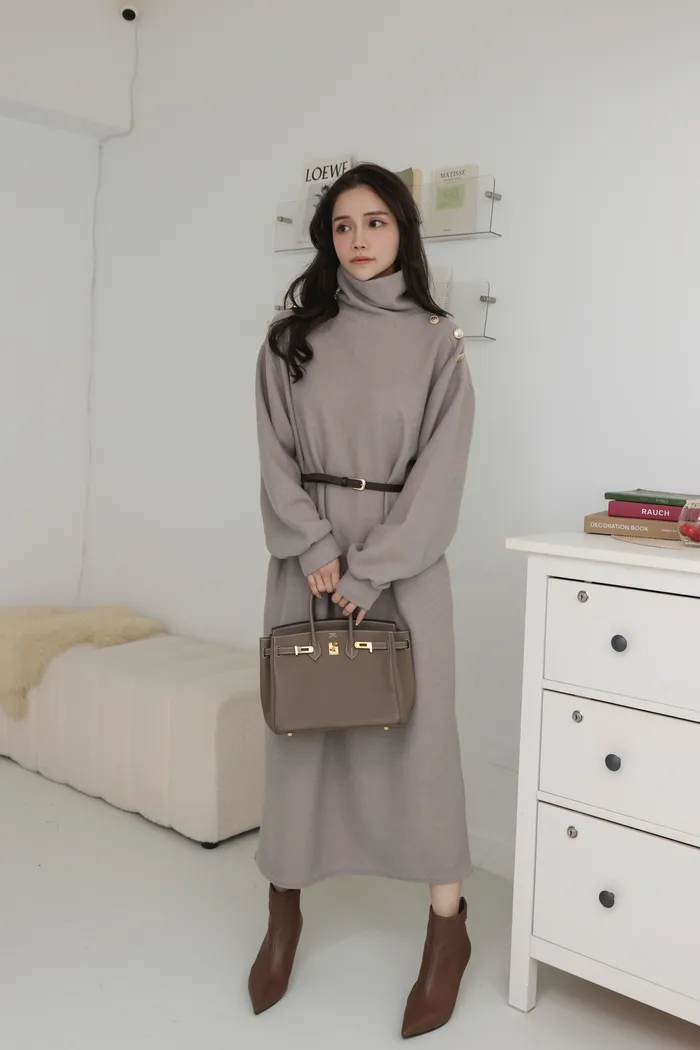精緻的金色鈕扣及可調節的細腰帶