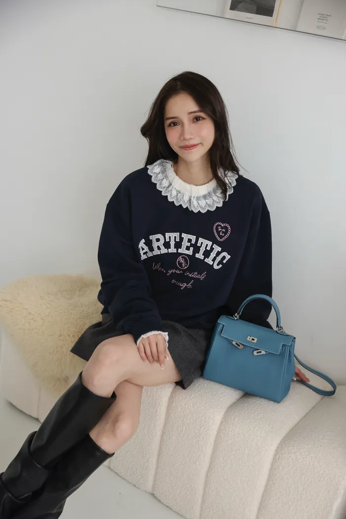 手袖拼接蕾絲很LADY