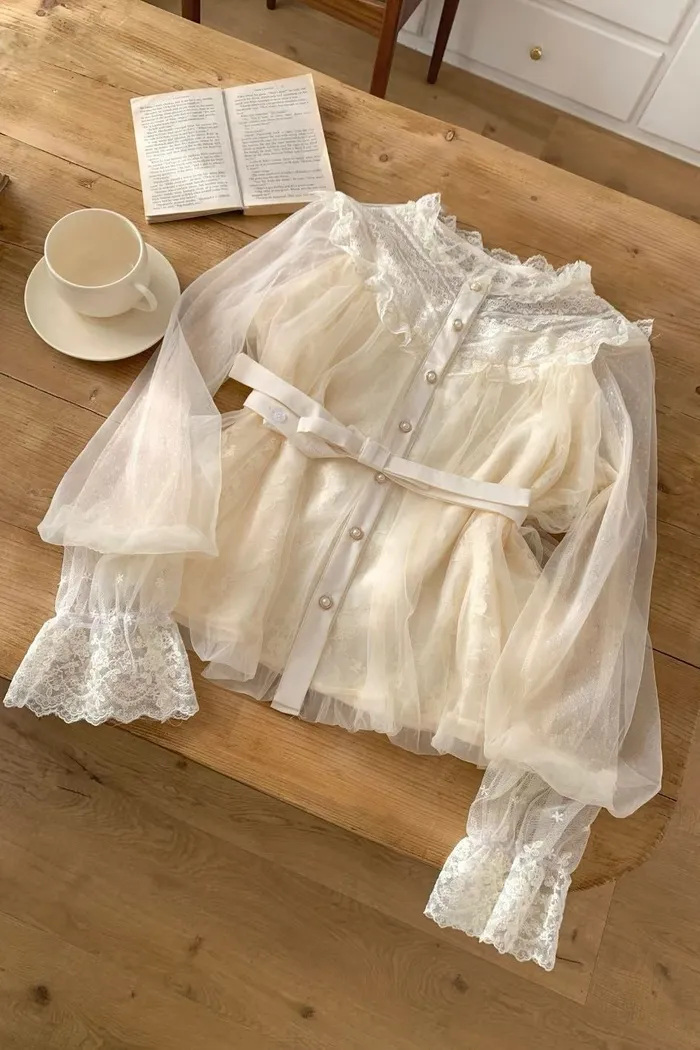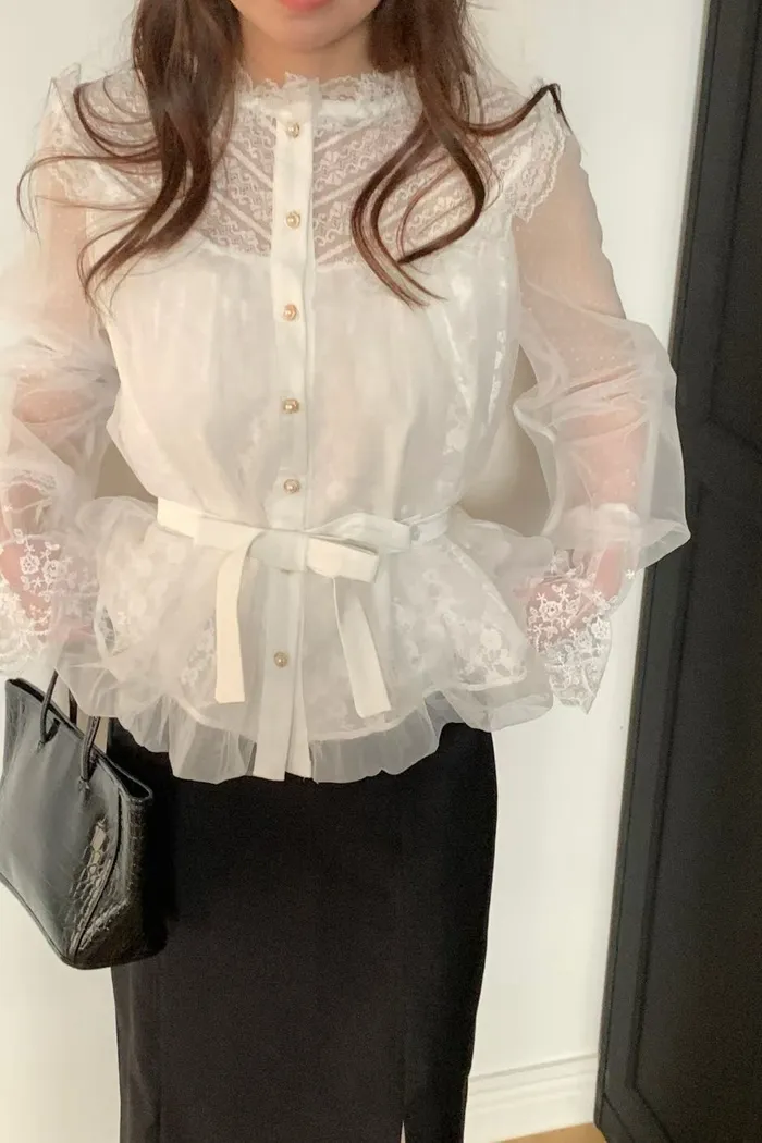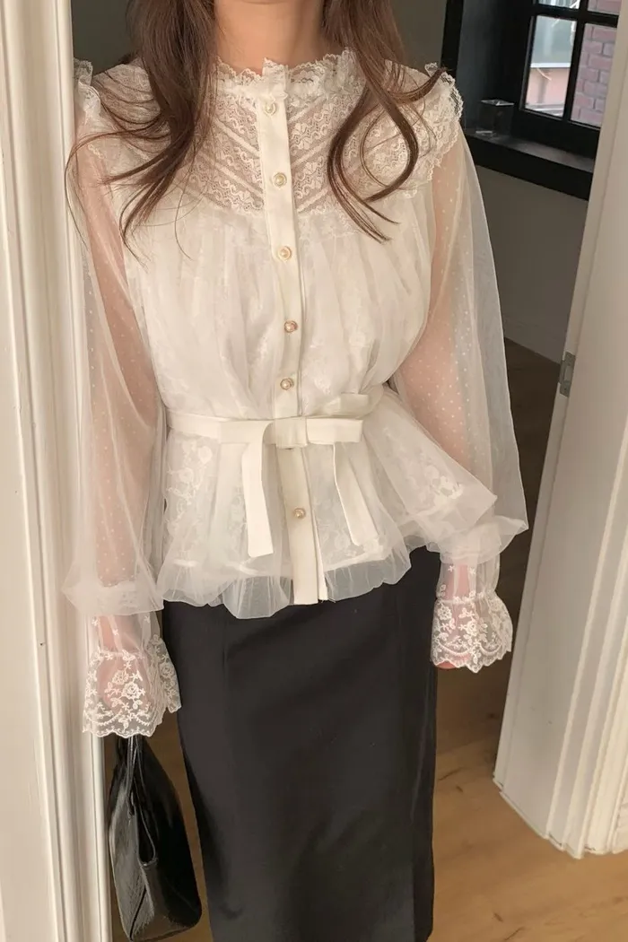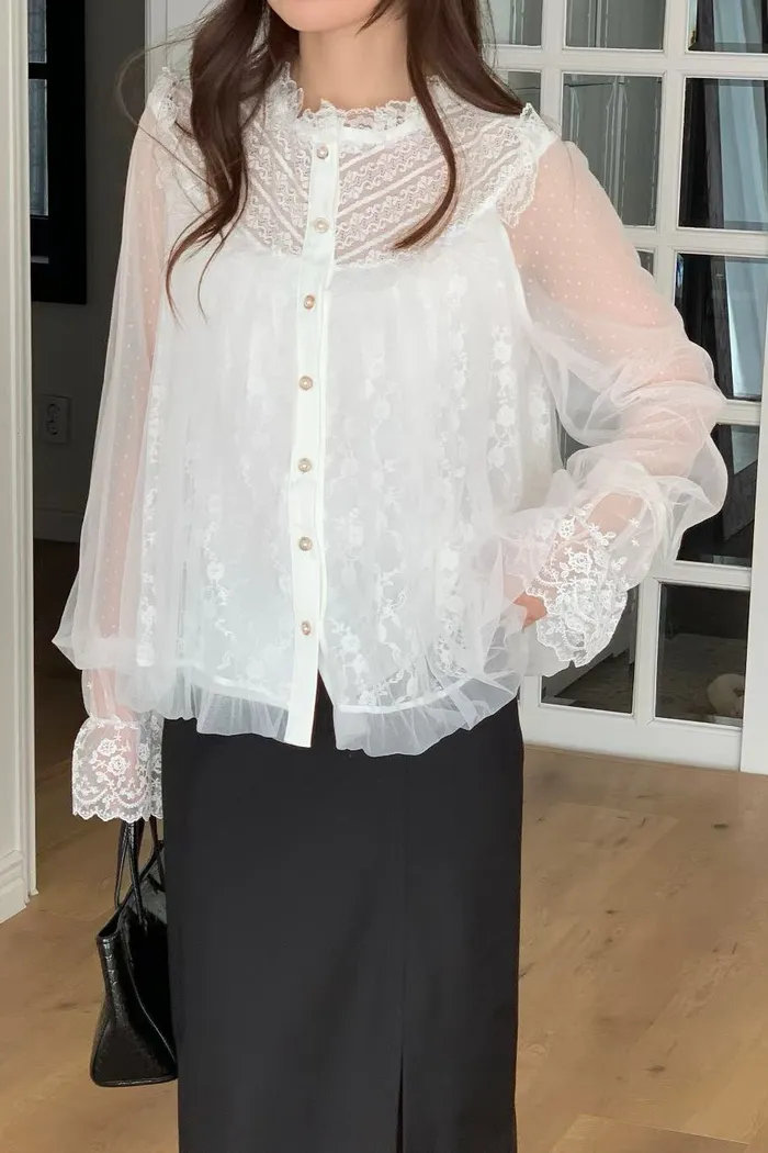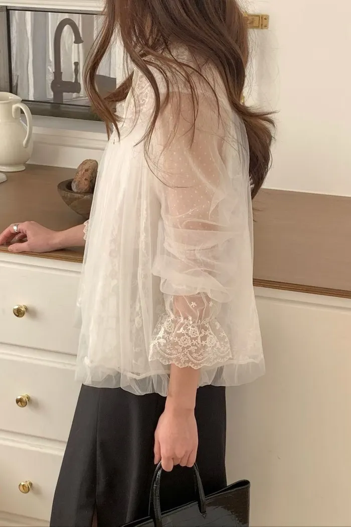 結合了細膩的蕾絲拼接與輕盈的網紗材質